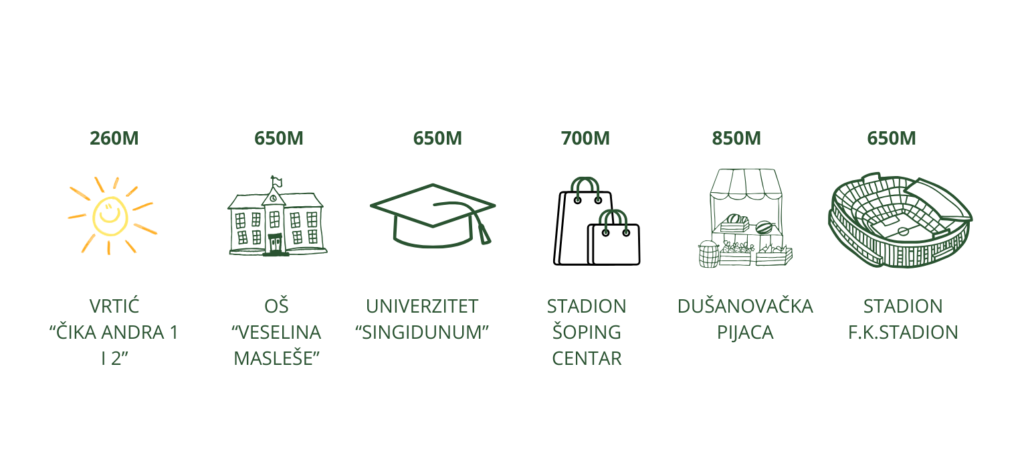 Smestena u blizini škola, prodavnica, restorana i javnog prevoza, idealna je za one koji žele biti blizu svih važnih sadržaja. Ne propustite priliku da postanete deo ove ekskluzivne zajednice.